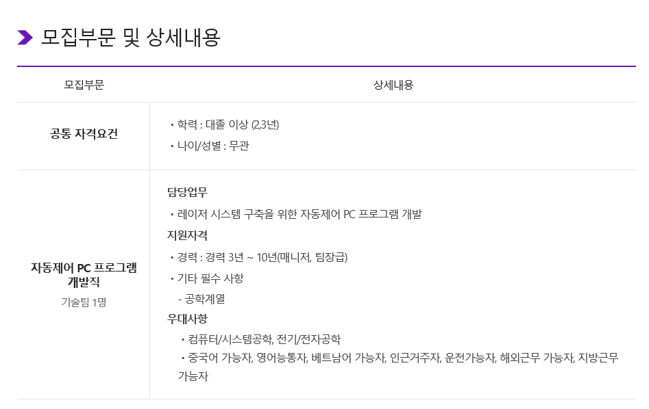 [코잡군포] 자동화시스템 pc프로그램 개발 경력직 모집